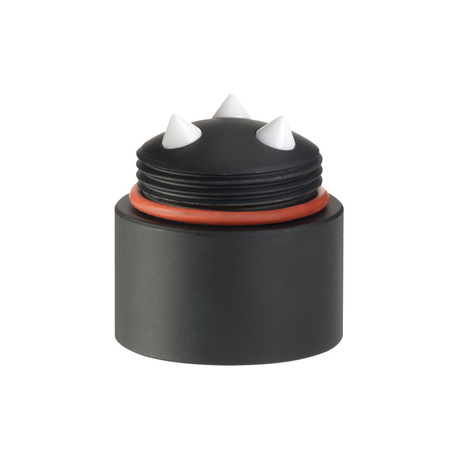 The BreakAway provides a safe means of keeping a vehicle entry tool readily at hand. The diminutive design adds less than .75" to the overall length of a Friction Baton. The BreakAway is positioned between the cap, Logo Cap, Grip Cap or Leverage Cap and the grip of the baton. The three ceramic pins of the BreakAway are precisely mounted in a matte black hardcoat anodized geodome. The existing baton cap covers the pins until they are needed.
