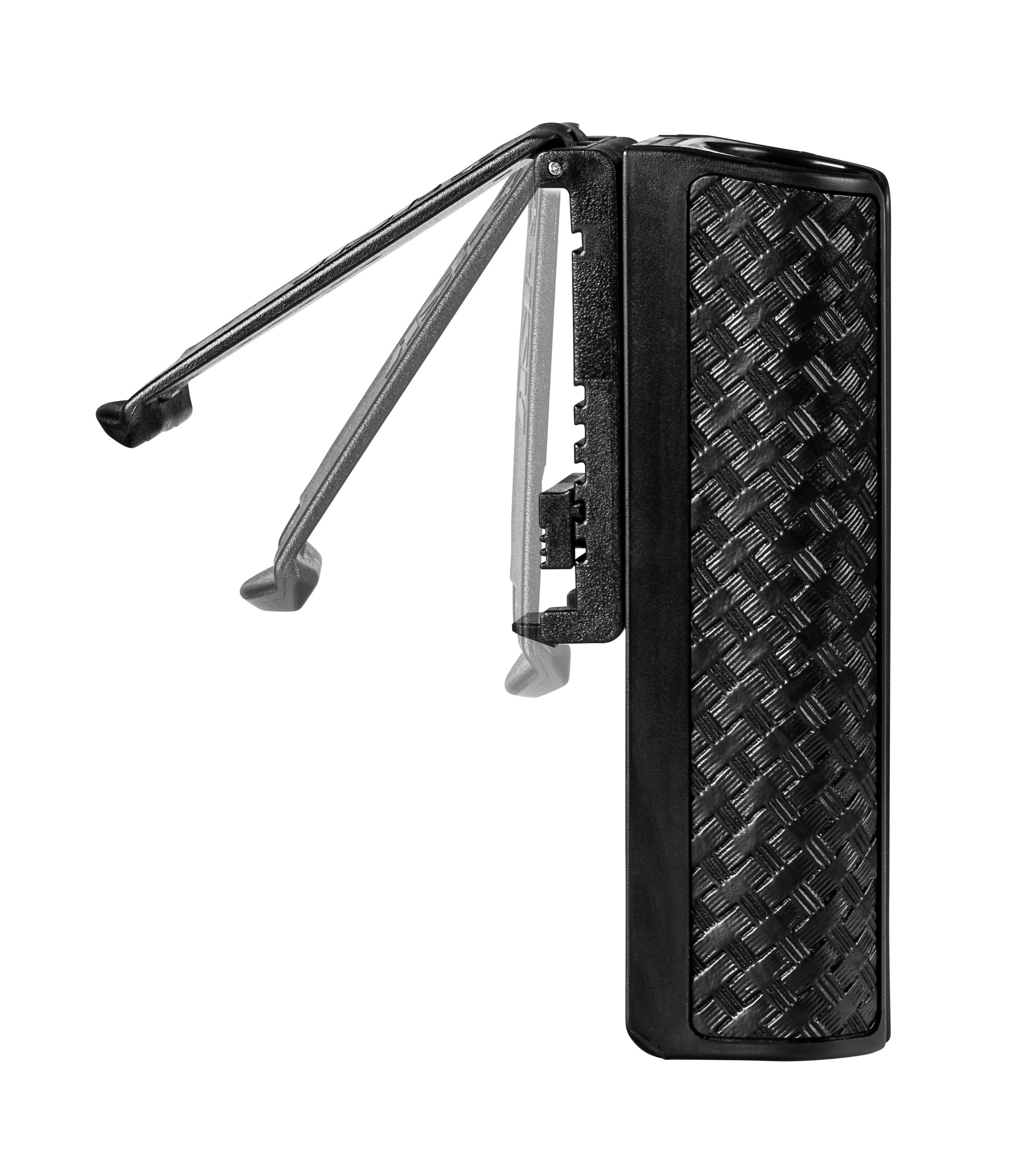 The SideBreak Scabbard swivels to 12 distinct positions on the duty belt. A retracted or expanded baton may be rapidly presentd, yet it is securely retained during dynamic confrontations.