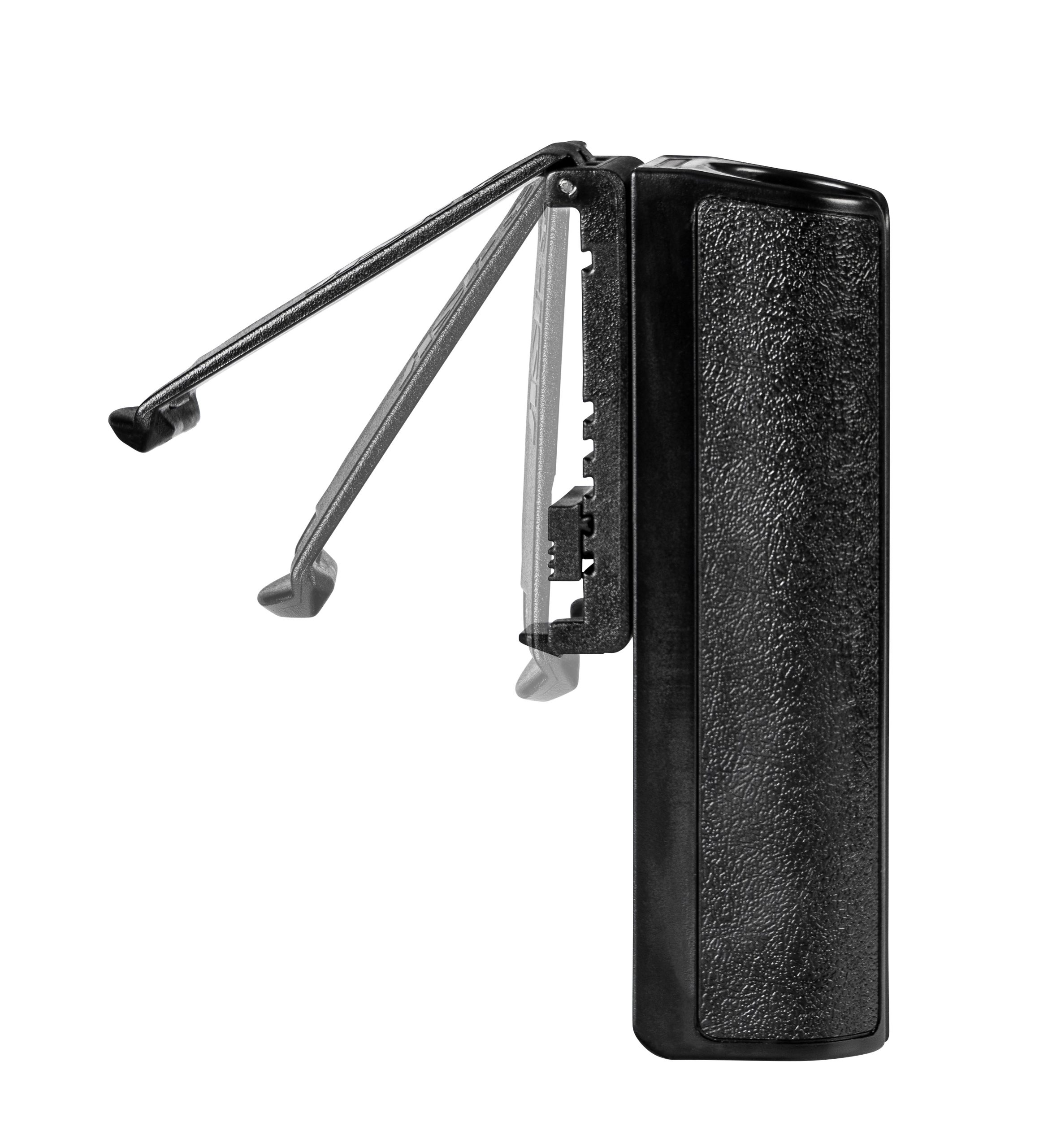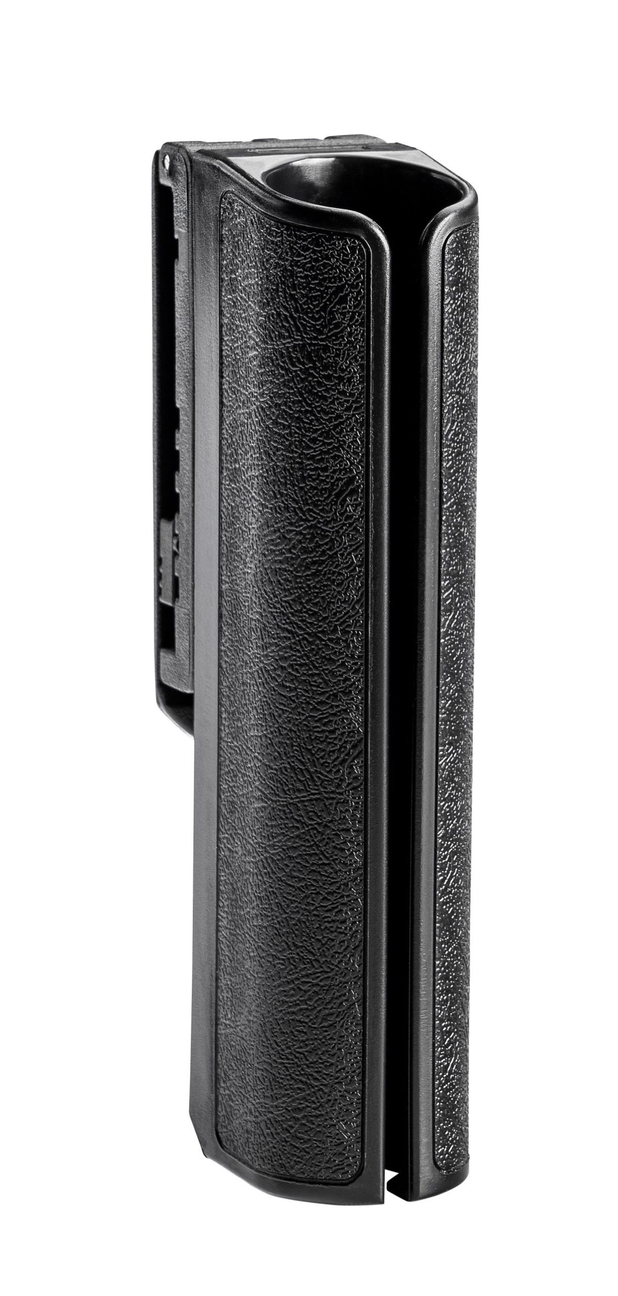 The SideBreak Scabbard swivels to 12 distinct positions on the duty belt. A retracted or expanded baton may be rapidly presentd, yet it is securely retained during dynamic confrontations.