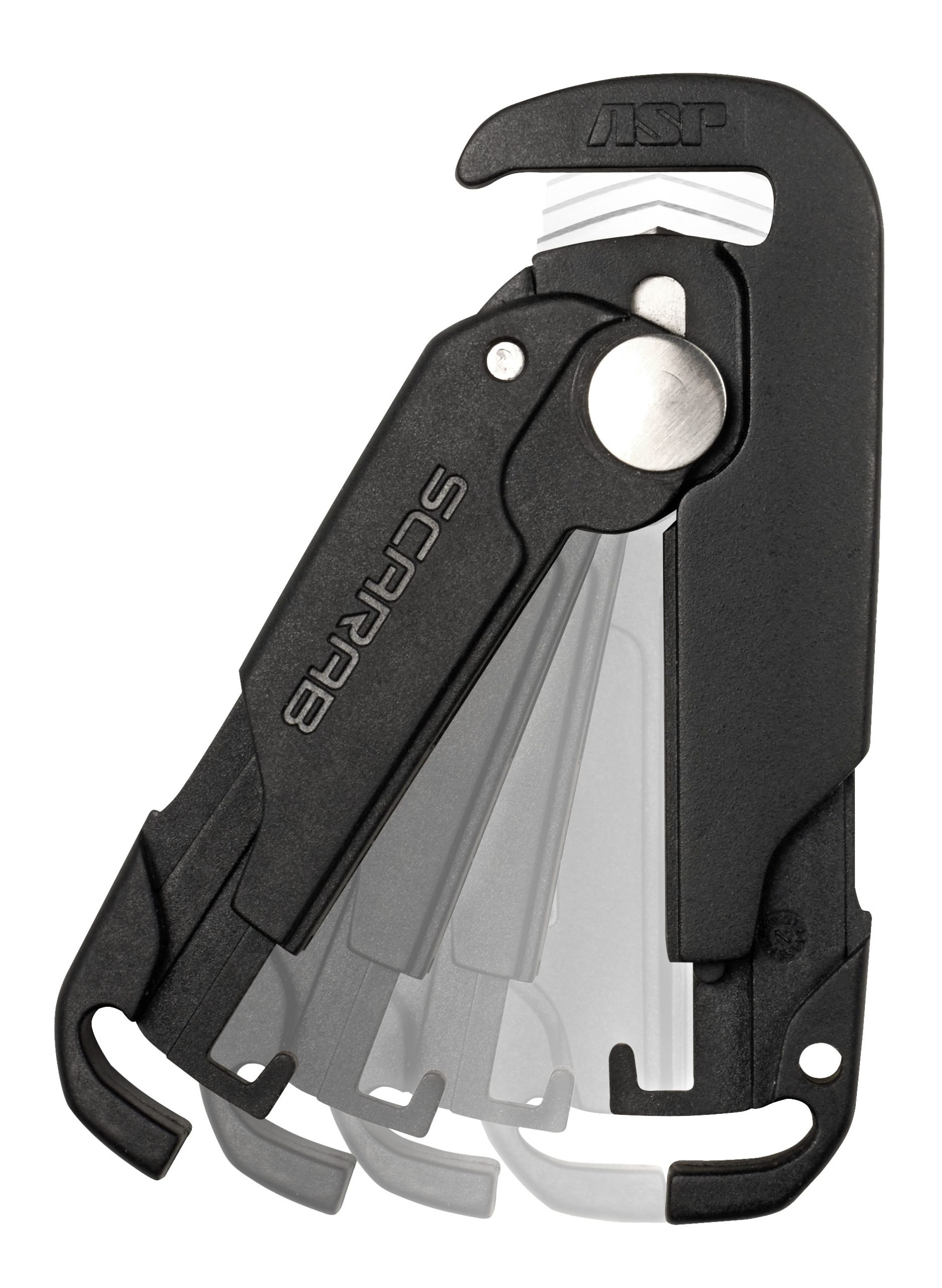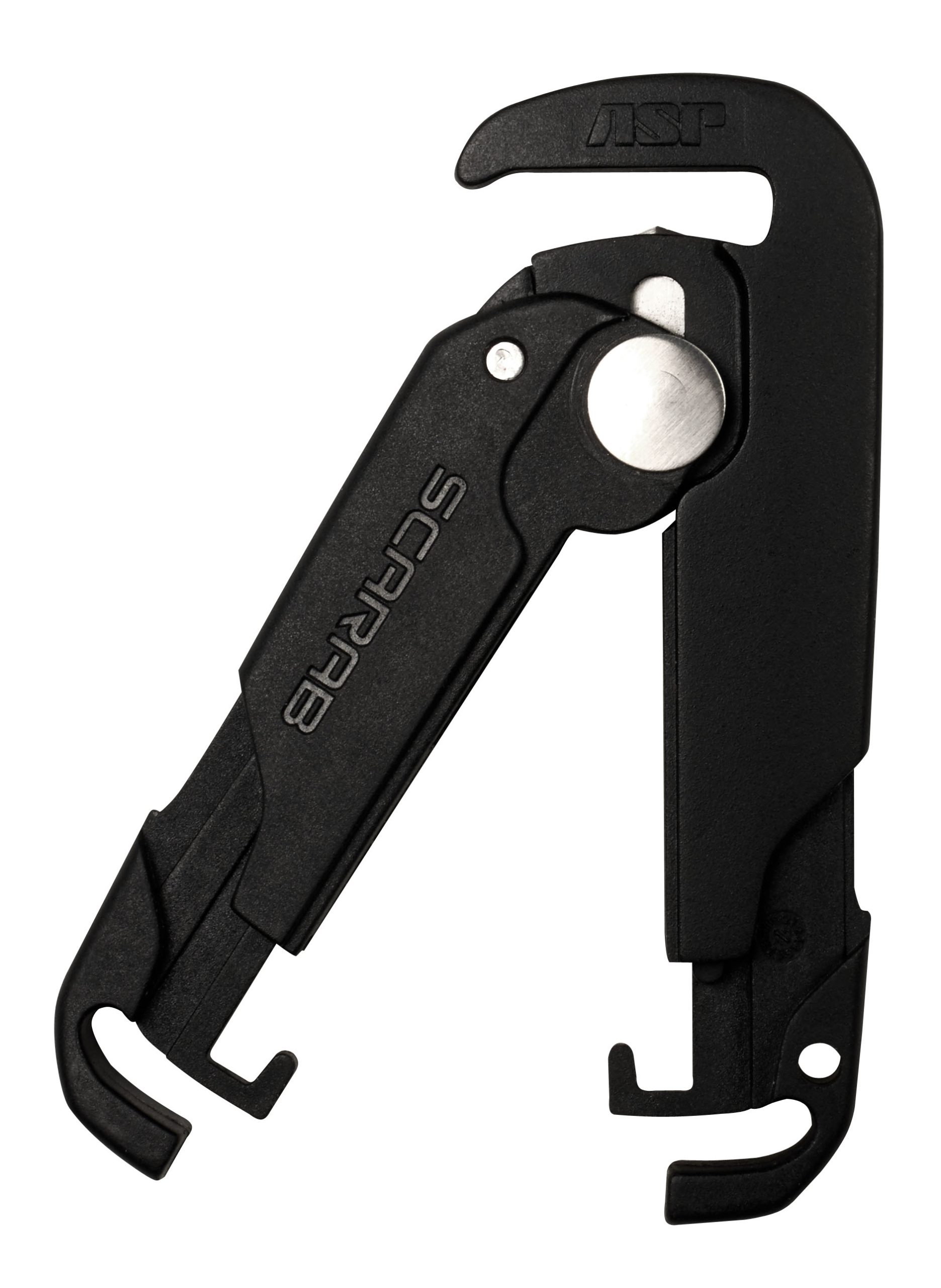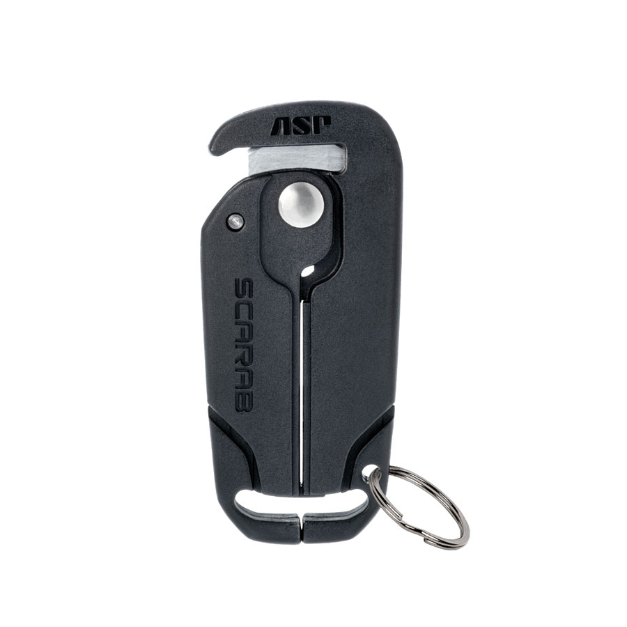 Scarab cutters attach to a keyring. They safely remove all brands of disposable restraints with compound leverage. The cutter is compact, powerful and easy to use.