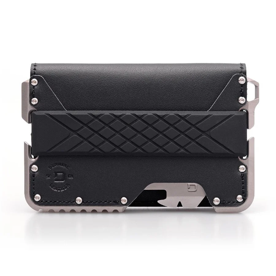 The wallet comes with the 14-function Dango MT02 multi-tool which slides into the card slot. When engaged, the multi-tool can nest securely into the safety locks built into the wallet chassis - allowing for easy sawing, cutting and protection. Common tools are built in: hexes, paracord cutter, nail pryer, a serrated/sharpened edge and even a phone stand.