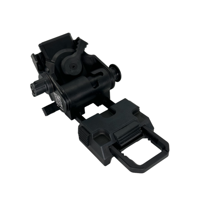 The Wilcox G24 Lite NVG Helmet Mount is a hybrid of the renowned G24 and lightweight G69 mounts. The G24 Lite utilizes the lightweight travel carriage of the G69 mount (which does not contain magnets) for a 12% weight savings, while maintaining durability for rigorous use. The Wilcox G24 Lite weighs 5.19 ounces, in comparison to 5.86-5.91 of the non Lite model. The magnets used in the non Lite model work with the Wilcox auto off J Arm to allow for the auto off function when a PVS-14 is put to stow. This arm has been discontinued; for the vast majority of all other devices commonly used and other mounting solutions used, the magnets serve no purpose and only contribute to total weight.